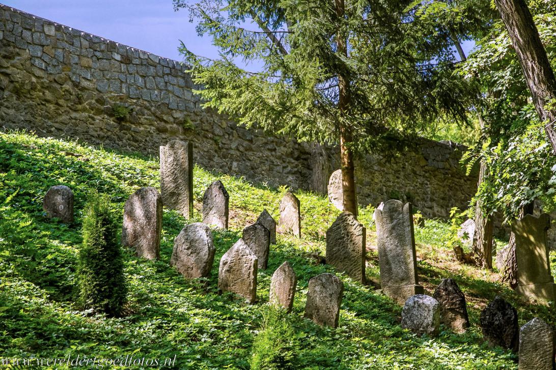 Joodse wijk en St. Procopius Basiliek in Třebíč: De Joodse begraafplaats in de stad Třebíč. Rond de Joodse begraafplaats staat een massieve stenen muur Er staan ruim drie duizend barokke en neoklassieke grafstenen op de begraafplaats, de grafsteen oudste dateert uit 1631. Er staat ook een gedenkteken voor de Joodse slachtoffers van de Holocaust tijdens Wereldoorlog II.