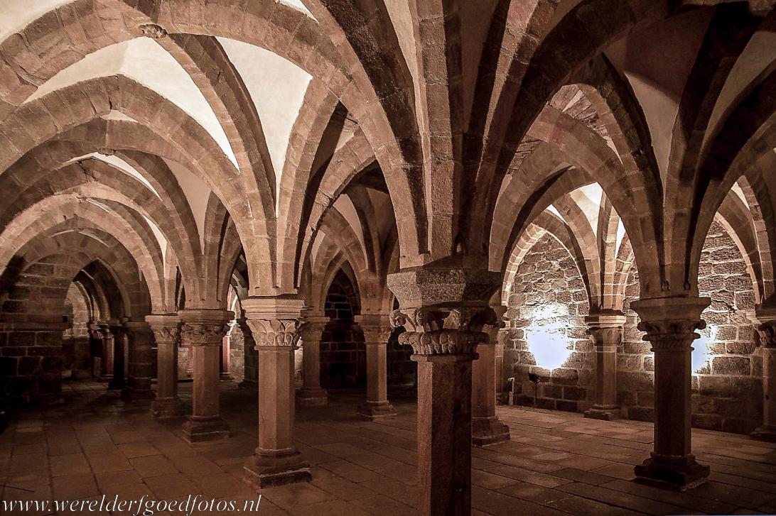 Joodse wijk en St. Procopius Basiliek in Třebíč: De crypte van de St. Procopius Basiliek wordt gedragen door vijftig zuilen, de zuilen hebben verschillende kapitelen. De romaanse crypte van de basiliek heeft een gotisch gewelfd plafond. De houten plafonddelen tussen de stenen ribben zijn ruim zeven eeuwen oud. De crypte is de laatste rustplaats van de monniken en stichters van een benedictijnenklooster, waarvan de basiliek deel uitmaakte.