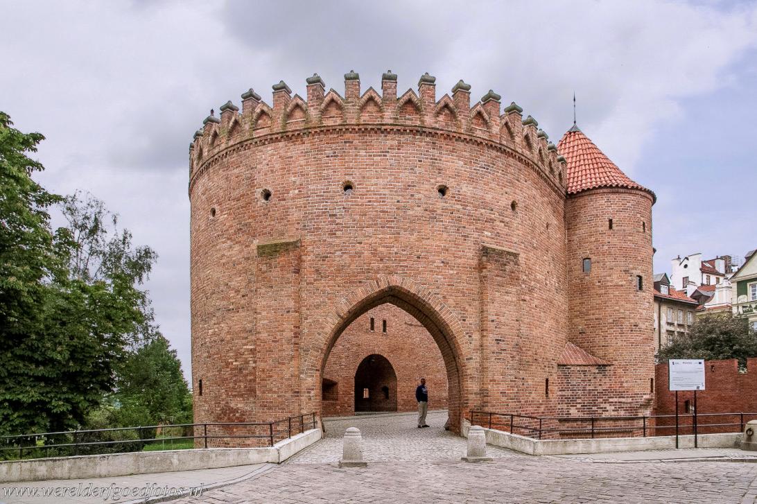 Historisch centrum van Warschau: De originele dubbele muren en de torens van de imposante Barbakan van Warschau werden in de 16de eeuw gebouwd. De Barbakan van Warschau werd tijdens WOII bijna compleet verwoest door de nazi's, na de oorlog werd ze, met de bijna geheel verwoeste stad, weer opgebouwd, veel van de originele brokstukken werden hiervoor gebruikt. De herbouw van de Barbakan gebeurde aan de hand van 17de-eeuwse etsen.