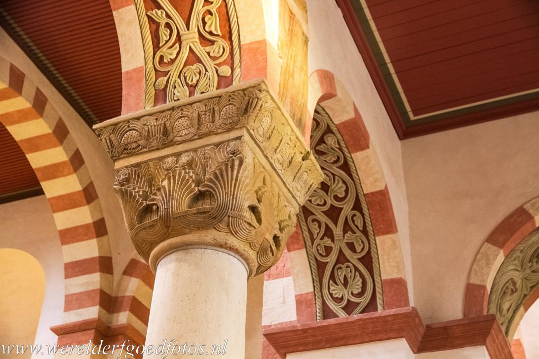 Dom en Michaëlskerk in Hildesheim: Een romaans kapiteel van een van de twaalf pilaren in het schip van de kerk. Het geschilderde stucwerk in de kerk is een waar meesterwerk van Ottoonse romaanse kunst. De harmonie die de Michaëlskerk kenmerkt, maakt haar een van de mooiste voorbeelden van Ottoonse romaanse architectuur. In 1985 werd de Michaëlskerk samen met de Mariendom in Hildesheim ingeschreven op de Werelderfgoedlijst van UNESCO.