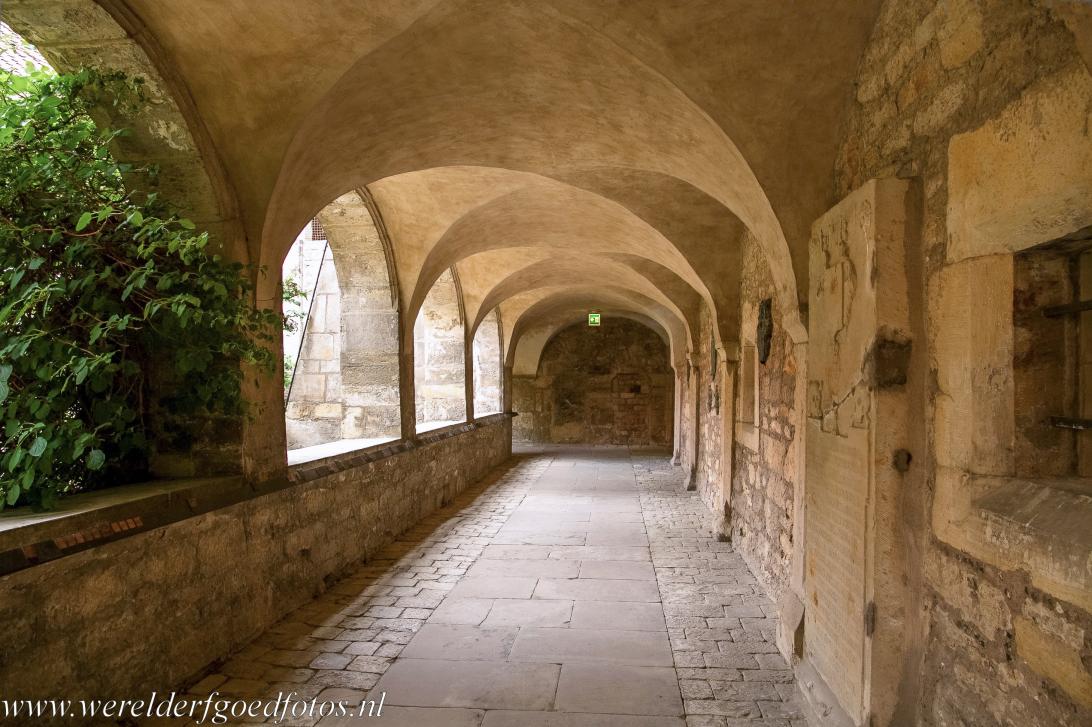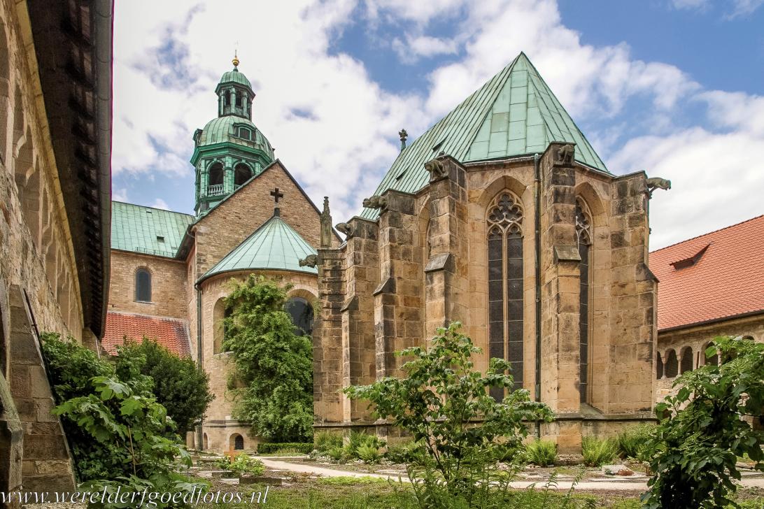 Dom van Hildesheim: Een van de kruisgangen van de Dom. In de kloostertuin werd in 1321 de St. Annakapel gebouwd. De kapel staat bij de apsis van de Dom op de St. Annabegraafplaats, die wordt omringd door drie kloostergangen. De St. Annakapel is het eerste gotische bouwwerk dat in Hildesheim werd gebouwd. In WOII werd de Dom op 22 maart 1945, kort voor het einde van de oorlog, tijdens een zwaar geallieerd bombardement bijna geheel verwoest; hij werd tussen 1950 en 1960 herbouwd.
