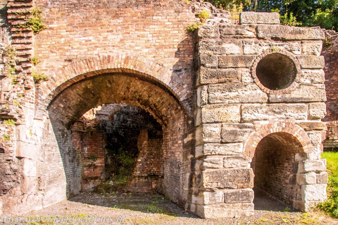 Ironbridge Gorge: De Bedlam Furnaces in de Ironbridge kloof, een van de eerste ijzersmelterijen die cokes gebruikten om ijzer te smelten. De Bedlam Furnaces werden gebouwd tussen 1750 en 1760, aan het begin van de Industriële Revolutie in Engeland. Hoogstwaarschijnlijk werden in de Bedlam Furnaces onderdelen voor de Iron Bridge gemaakt.