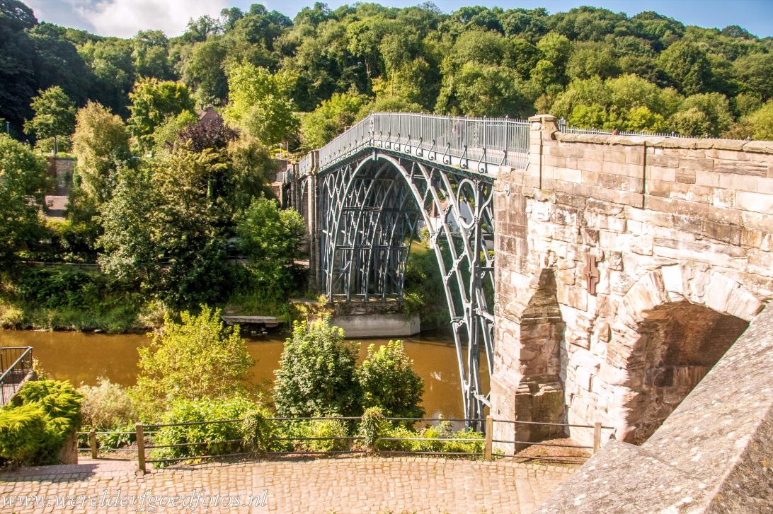 Ironbridge Gorge: De Iron Bridge over de rivier de Severn. De Iron Bridge is de eerste brug ter wereld, die van ijzer werd gebouwd. De Iron Bridge werd ontworpen door de architect Thomas Pritchard en gebouwd door Abraham Darby III. De brug werd gebouwd in 1779-1781. De brug bestaat uit meer dan 800 afzonderlijke onderdelen. De Iron Bridge werd op Nieuwjaarsdag 1781 voor het verkeer geopend.