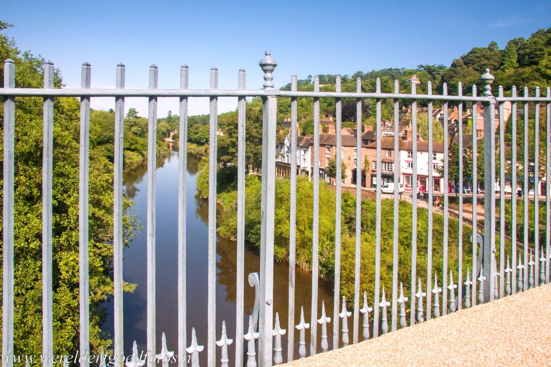 Ironbridge Gorge: De rivier de Severn gezien vanaf de Iron Bridge. De gietijzeren brug ligt in de Ironbridge Gorge bij het dorpje Ironbridge. Tegenwoordig is de Iron Bridge alleen toegankelijk voor voetgangers. De Iron Bridge is op iedere dag en op ieder tijdstip van het jaar open en mag worden overgestoken. Het museum en bezoekerscentrum in het tolhuis is beperkt open.