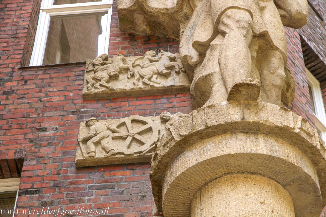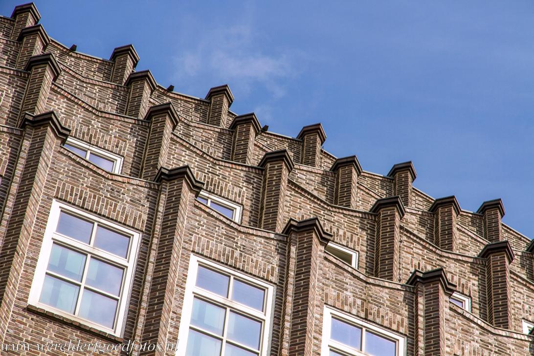 Speicherstadt en Kontorhaus-district met het Chilehaus in Hamburg: Een erker in het Chilehaus. Het Chilehaus werd gebouwd voor de scheepsmagnaat Henry (Chile) Sloman. Het wordt gezien als hét icoon van het Duitse baksteenexpressionisme. Het tien verdiepingen tellende Chilehaus is verfraaid met decoratief metselwerk en handgemaakt keramiek. Dit kantoorgebouw is een schoolvoorbeeld van de modernistische architectuur van rond 1920.