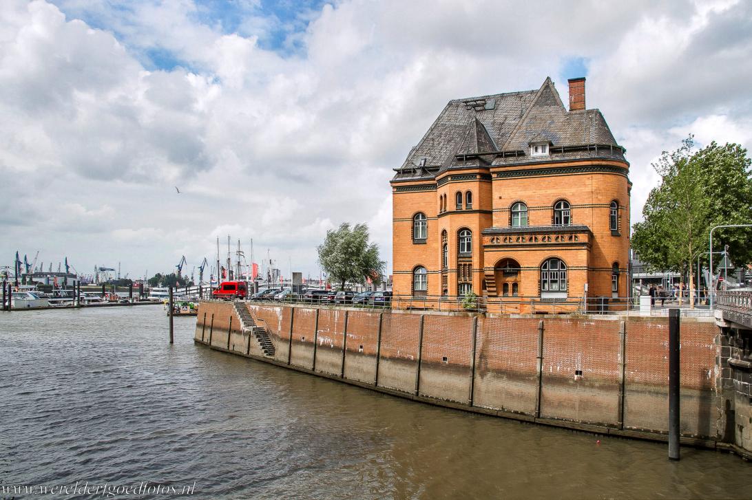 Speicherstadt en Kontorhaus-district met het Chilehaus in Hamburg: Het Wasserschloss (Waterkasteel) is een icoon van de Speicherstadt. Dit historische gebouw diende ooit als woning en werkplaats voor de gespecialiseerde havenarbeiders die de lieren bedienden. De Hanzestad Hamburg ligt in het noorden van Duitsland aan de Elbe. Door de diepte van deze rivier is het mogelijk dat oceaanschepen vanaf de Noordzee de haven van Hamburg kunnen binnenvaren.