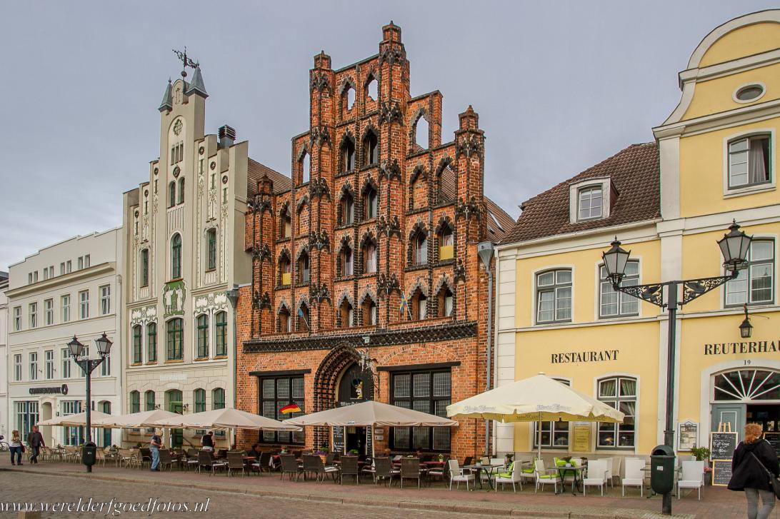 Historisch stadscentrum van Wismar: Wismar ligt in het noorden van Duitsland. Wismar werd rond de 12de eeuw gesticht; het stratenplan is nagenoeg hetzelfde gebleven. De stad was lid van de Hanze, een handelsverbond uit de late middeleeuwen. In de 13de en 14de eeuw was Wismar een welvarende Hanzestad. De natuurlijke haven van de stad ligt aan de baai van Wismar, een van de baaien van de Oostzee. Wismar kwam in 1648 onder de heerschappij van Zweden en werd in 1871 een deel van Duitsland, hoewel Zweden pas in 1903 officieel afstand deed van haar rechten op de stad. De Zweedse overheersing is nog altijd zichtbaar in enkele gebouwen, zoals Der Alter Schwede, een burgerhuis in de gotische baksteenstijl op het grote marktplein. Op het marktplein staat de Wasserkunst, een smeedijzeren fontein, die in 1602 werd geïmporteerd vanuit Nederland. Het Gewölbe is een vakwerkhuis waar wijnhandelaren hun portwijn heenbrachten voor kwaliteitscontrole. Enkele andere monumenten in Wismar zijn het oude stadhuis en de gotische bakstenen kerken. Wismar maakte deel uit van de voormalige DDR. Na de hereniging van Duitsland in 1990, begon Wismar met de restauratie van haar historische centrum en de gotische bakstenen monumenten. Net als Stralsund is Wismar een goed bewaard gebleven Hanzestad aan de Baltische zuidkust. Haar historische stadscentrum maakt deel uit van het Werelderfgoed: Historische stadscentra van Stralsund en Wismar. Deze historische stadscentra staan sinds 2002 op de Werelderfgoedlijst van UNESCO ingeschreven als: Historic Centres of Stralsund and Wismar.