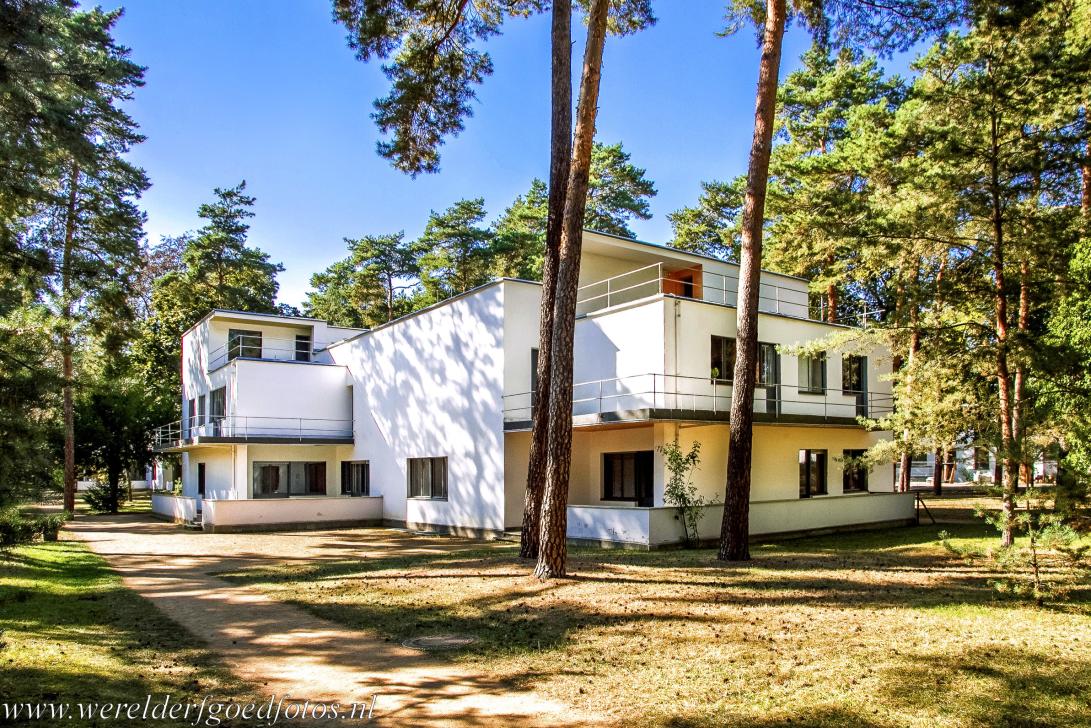 Het Bauhaus in Dessau: De woning van Walter Gropius in de Meisterhaussiedlung. De docenten van het Bauhaus woonden met hun gezin in de Meisterhaussiedlung. Hiervoor ontwierp Walter Gropius in 1925 en 1926 drie halfvrijstaande woningen voor docenten van het Bauhaus en een vrijstaande woning voor de directeur, dat was hijzelf in die tijd. Walter Gropius was met Hannes Meyer en Ludwig Mies van der Rohe een van de beroemdste directeuren van het Bauhaus.