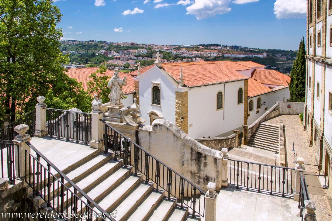 Universiteit van Coimbra - Alta en Sofia: Coimbra ligt in centraal Portugal, tussen Porto en Lissabon. De stad Coimbra staat bekend om haar universiteit, de oudste universiteit van het land en een van de oudste universiteiten ter wereld. De universiteit werd in 1290 gesticht in Lissabon, ze werd meerdere malen overgeplaatst van Lissabon naar Coimbra en weer terug, totdat de universiteit in 1537 definitief werd gevestigd in Coimbra. In 1597 werd het koninklijk paleis van Coimbra aangekocht door de Universiteit van Coimbra. Dit voormalige paleis heeft tot op de dag van vandaag onafgebroken dienst gedaan als hoofdgebouw van de universiteit, het gebouw biedt onderdak aan de belangrijkste ruimtes van de universiteit, zoals de Joanina Bibliotheek, de kapel van St. Michaël en de Sala dos Capelos, de Grote Zaal. De 18de eeuwse Joanina Bibliotheek werd gebouwd in de Portugese barokstijl, ze herbergt een groot aantal kostbare manuscripten en is nu een nationale monument. De rijk gedecoreerde kapel van St. Michaël werd in de 16de eeuw gebouwd in de manuelstijl. De 17de eeuwse Sala dos Capelos is de voormalige troonzaal van het paleis en is nu de ceremoniezaal. De universiteit van Coimbra - Alta en Sofia - kreeg in 2013 de status Werelderfgoed van UNESCO en staat ingeschreven op de Werelderfgoedlijst van UNESCO als: University of Coimbra - Alta and Sofia.