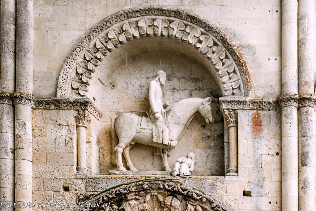 De kerk Saint Hilaire in Melle: De gebeeldhouwde ruiter boven het noordelijke portaal stelt een gekroonde edelman voor wiens paard een half zittende figuur in een lange mantel vertrapt. De vertrapte figuur zou het heidendom symboliseren of de wetten uit het Oude Testament. De kerk Saint Hilaire in Melle werd in 1998 ingeschreven op de Werelderfgoedlijst van UNESCO.