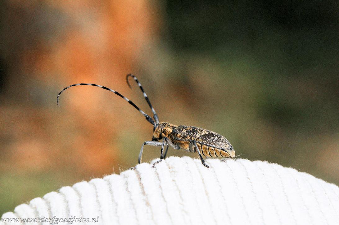 Het oerbos van Białowieża: Een boktor met zijn extreem lange voelsprieten. Een boktor leeft op dode bomen, vermolmde boomstammen of takken van oude bomen. Ze leggen eieren op dood hout of oude eiken, wat in het bos van Białowieża voldoende aanwezig is, het oerbos is dan ook een voortreffelijke leefomgeving voor de boktor. In het oerbos van Białowieża komen meer dan 1200 plantensoorten voor, de planten dienen als voedsel en onderkomen voor de vele insecten.