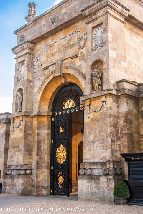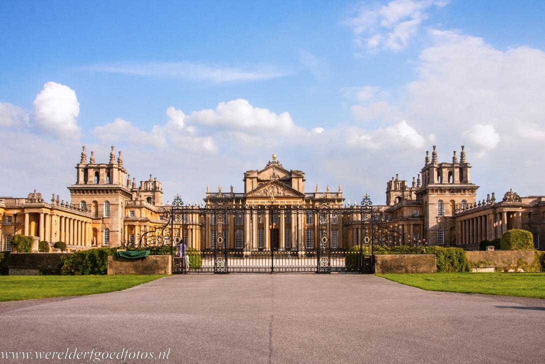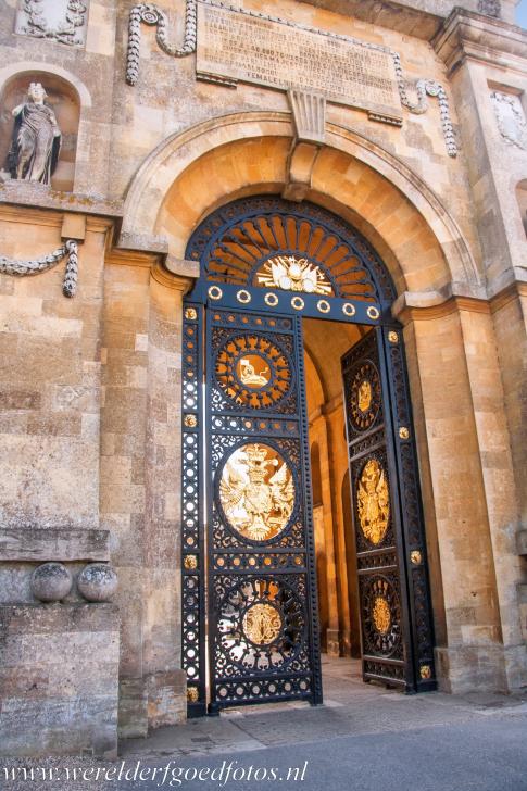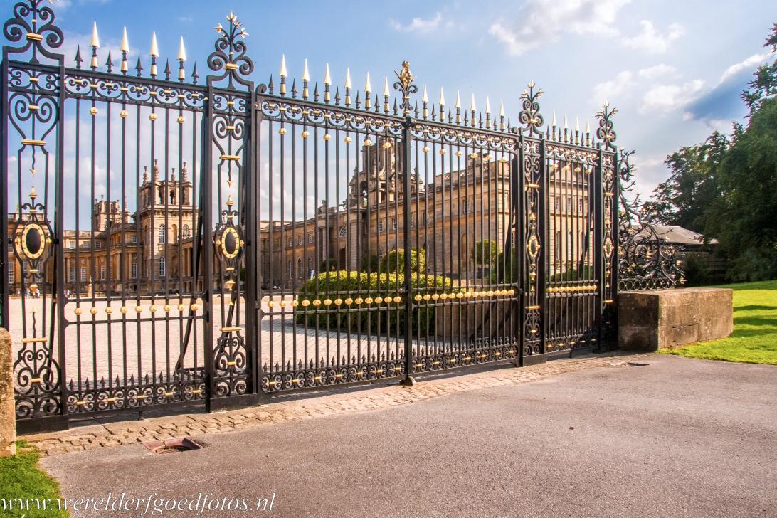 De smeedijzeren hekken voor Blenheim Palace, erachter ligt het grote hofplein, de Great Court of de North Court. Blenheim Palace werd gebouwd in de unieke Engelse barokstijl. Het interieur gedeeltelijk geïnspireerd door het paleis van Versailles, zoals veel paleizen in Europa. Blenheim Palace is een mooie combinatie van een familielandgoed, een mausoleum, een Engels nationaal monument en een Werelderfgoed van UNESCO.