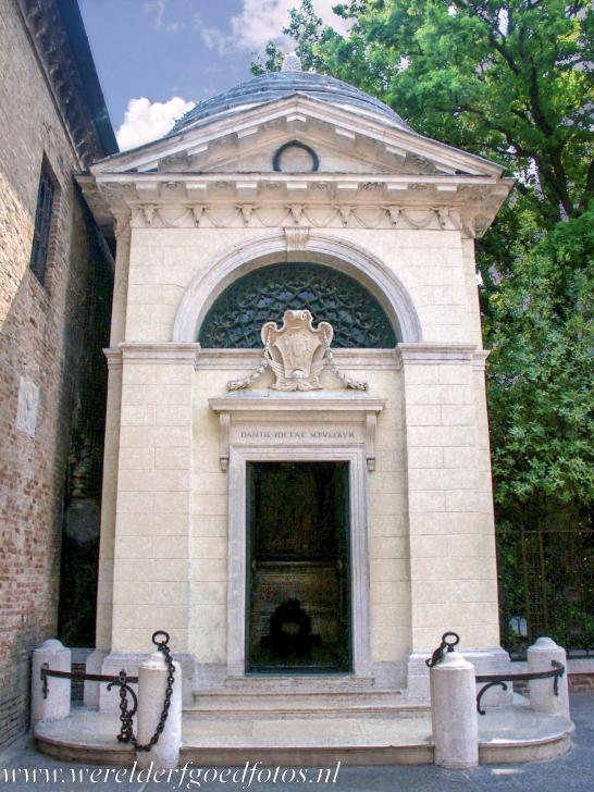 De tombe van Dante in Ravenna. De Italiaanse schrijver, dichter en filosoof Dante Alighieri werd verbannen uit Florence en verhuisde naar Ravenna, waar hij in 1321 stierf. Florence kreeg spijt, dat ze de beroemde Dante hadden verbannenen en vroeg verscheidene malen om de stoffelijke resten van Dante. Ravenna weigerde. Niettemin werd een graftombe voor Dante gebouwd in de Santa Croce te Florence, maar deze is nog altijd leeg, zijn stoffelijke resten liggen in deze tombe in Ravenna.