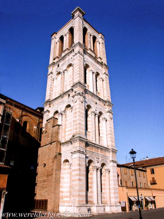 Ferrara, stad van de Renaissance en de Po Delta: De klokkentoren van de Dom van Ferrara werd in de periode 1451-1493 gebouwd in de renaissancestijl, ze werd nooit helemaal afgebouwd. De vrijstaande toren werd gebouwd van wit en rose marmer. In Ferrara is de Dom het belangrijkste monument uit de middeleeuwen. Het museum van de Dom is gevestigd in de voormalige San Romano-kerk, gelegen tegenover de Dom aan de Piazza Trento-Trieste.