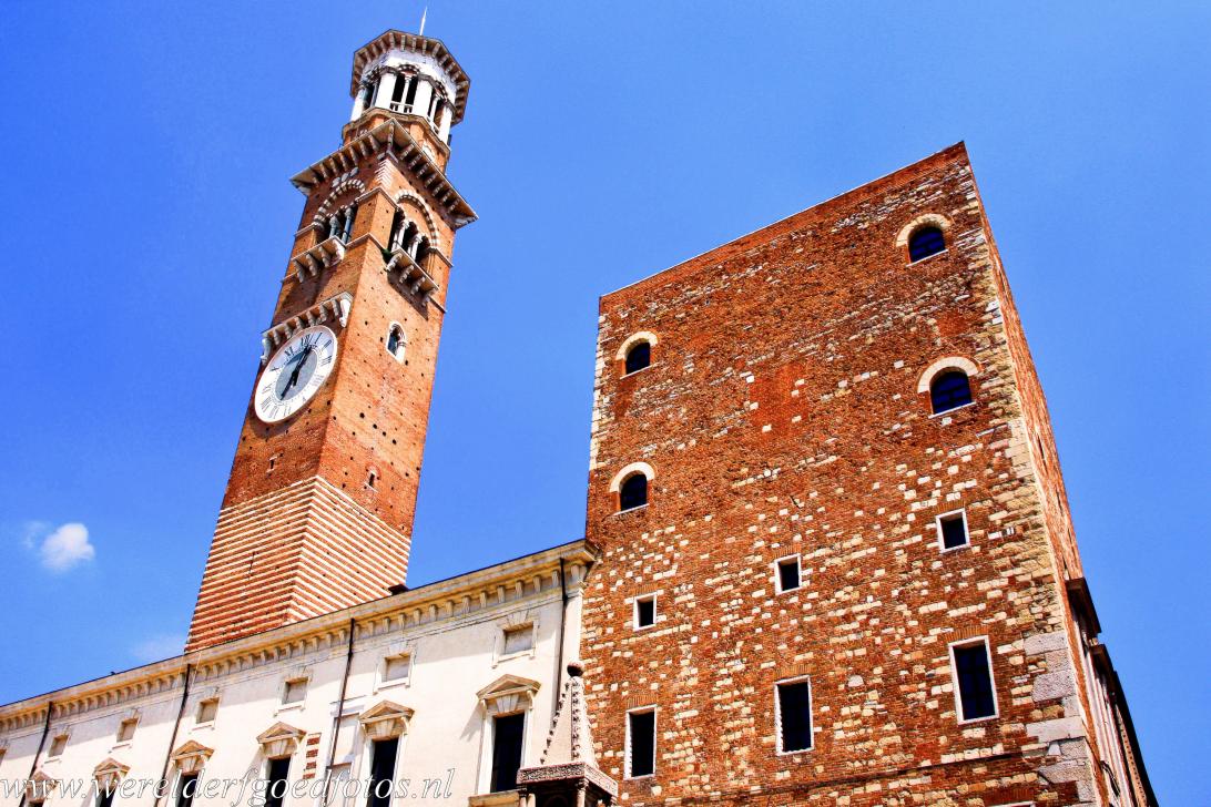 De stad Verona: De Torre dei Lamberti is de klokkentoren van Verona. De toren werd gebouwd in 1172. De Torre dei Lamberti is 84 meter hoog, de klok dateert uit 1779. De toren werd in 1403 door de bliksem getroffen, de restauratie duurde van 1448 tot 1464. De rood met wit gestreepte Torre dei Lamberti is de toren van het Palazzo della Ragione.