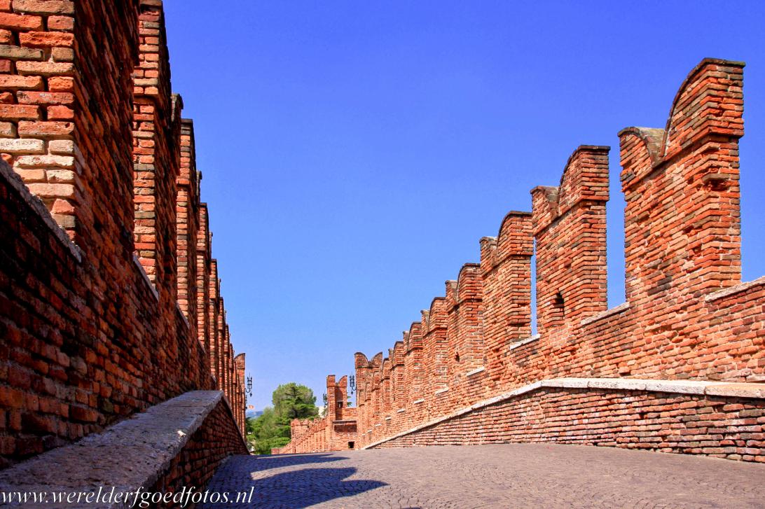 De stad Verona: De Ponte Scaligero is een bijna 50 meter lange met kantelen beschermde brug. Hierdoor was de brug bij een eventuele vijandige aanval beter te verdedigen. De middeleeuwse Ponte Scaligero werd in 1354-1356 gebouwd over de rivier de Adige. De Ponte Scaligero was op het moment van haar voltooiing de grootste brugoverspanning ter wereld.