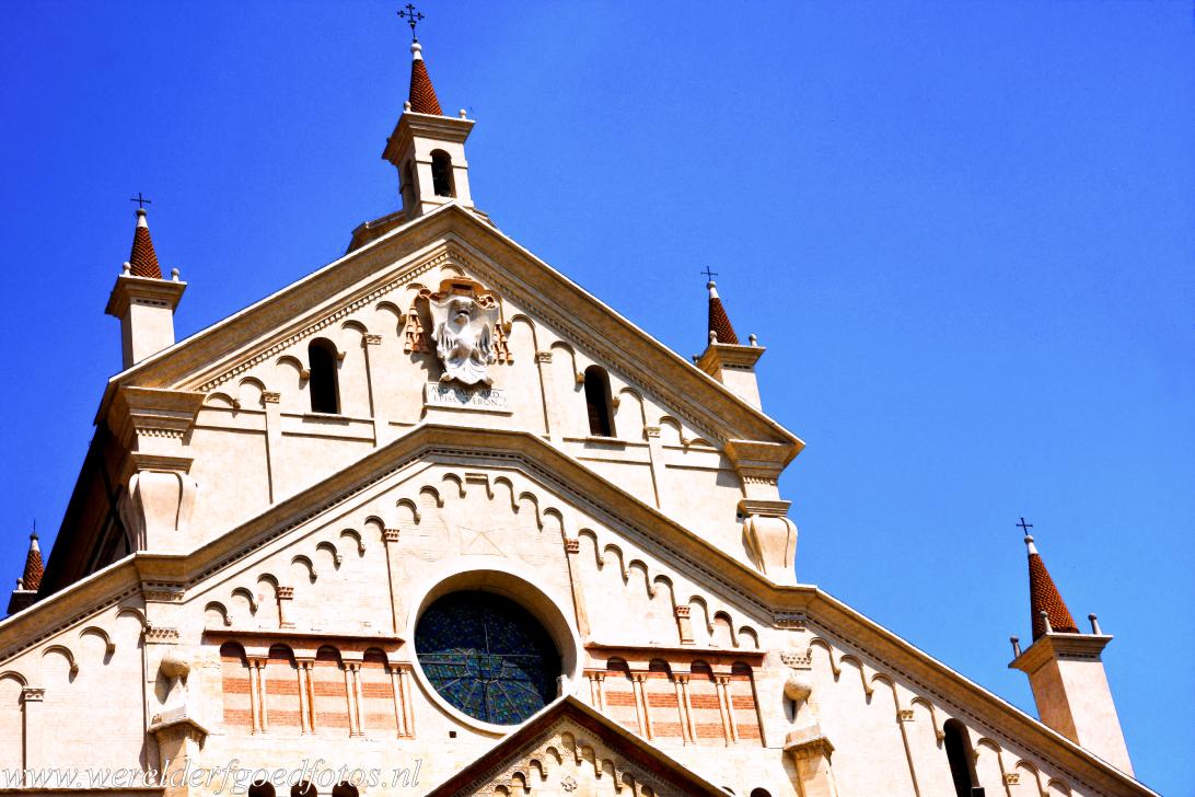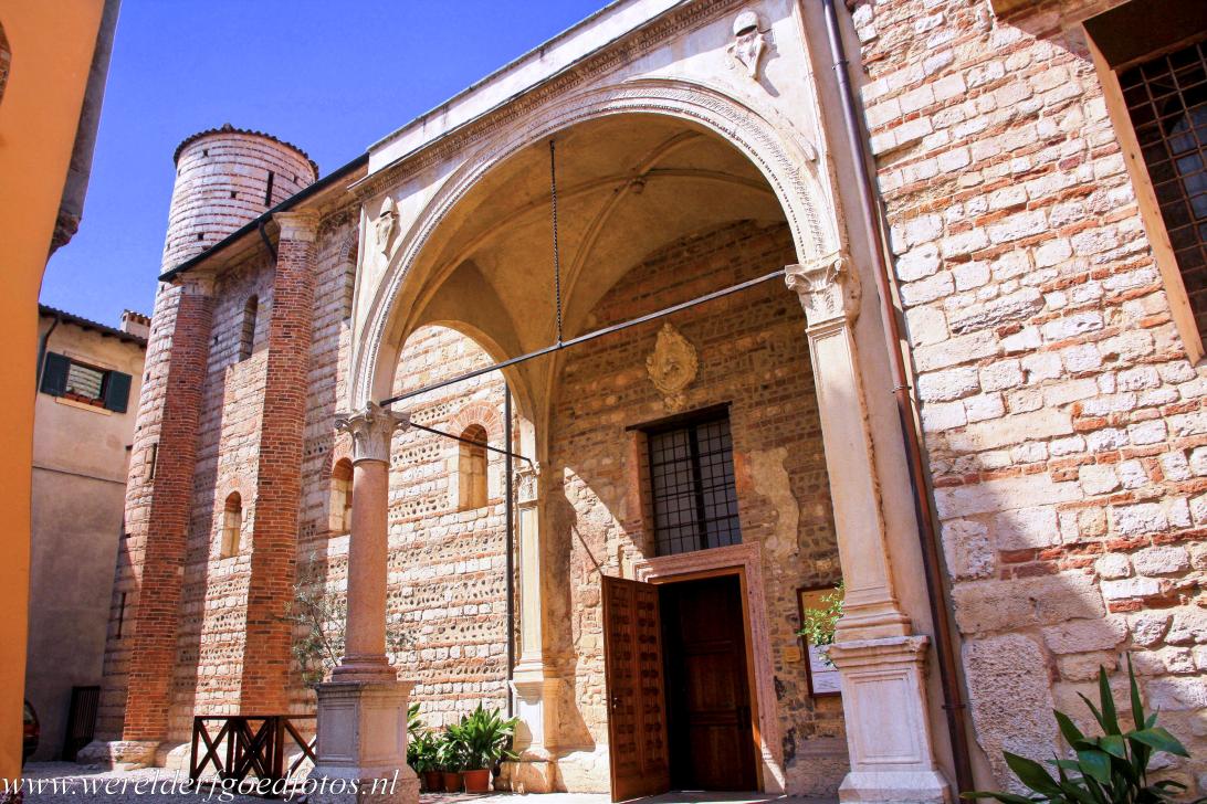 De stad Verona: De Chiesa di San Lorenzo werd na een zware aardbeving in 1117 herbouwd, de kerk werd gebouwd in de typische romaanse stijl van Verona, strepen van okerkleurig tufsteen afgewisseld met rode baksteen. De trappen in de torens aan beide kanten van de façade leiden naar de vrouwengalerij. De San Lorenzo werd na WOII gerestaureerd.